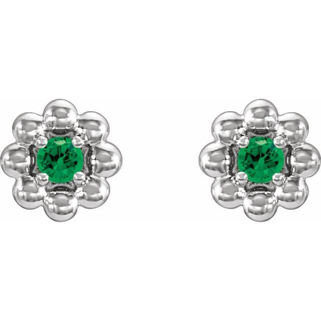 14 Karat White Gold Natural Tsavorite Garnet Petite Flower Beaded Earrings Comes Set With