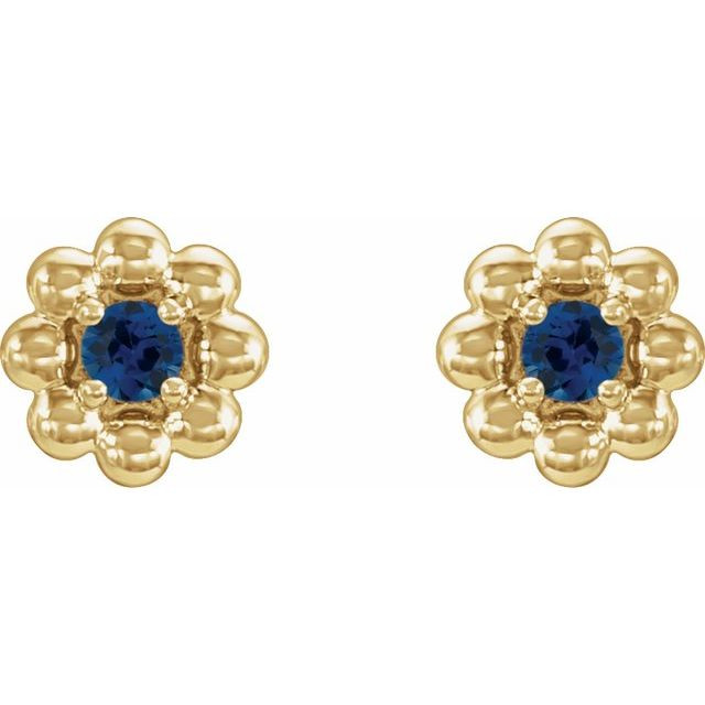 14 Karat Yellow Gold Natural Blue Sapphire Petite Flower Beaded Earrings