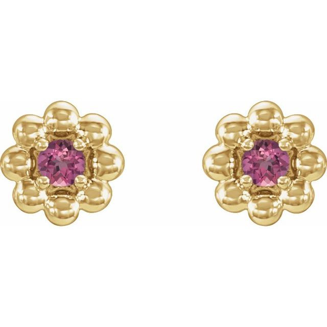 14 Karat Yellow Gold Natural Pink Tourmaline Petite Flower Beaded Earrings