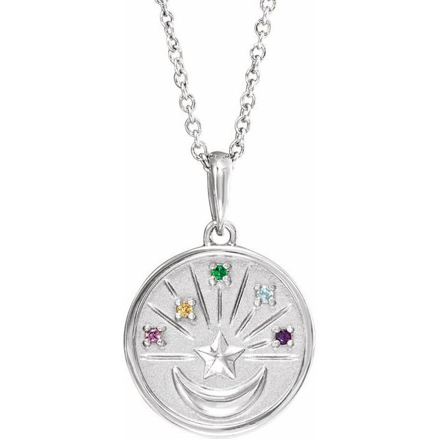 Sterling Silver Petite Multi-Gemstone Celestial Coin 18 inch Necklace
