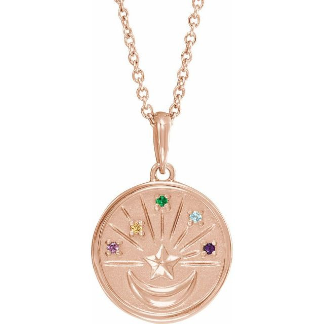 14K Rose Petite Multi-Gemstone Celestial Coin 18 inch Necklace