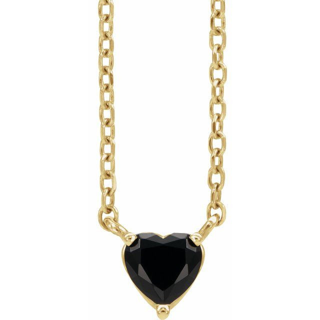 14 Karat Yellow Gold Natural Black Onyx Heart 16 inch Necklace