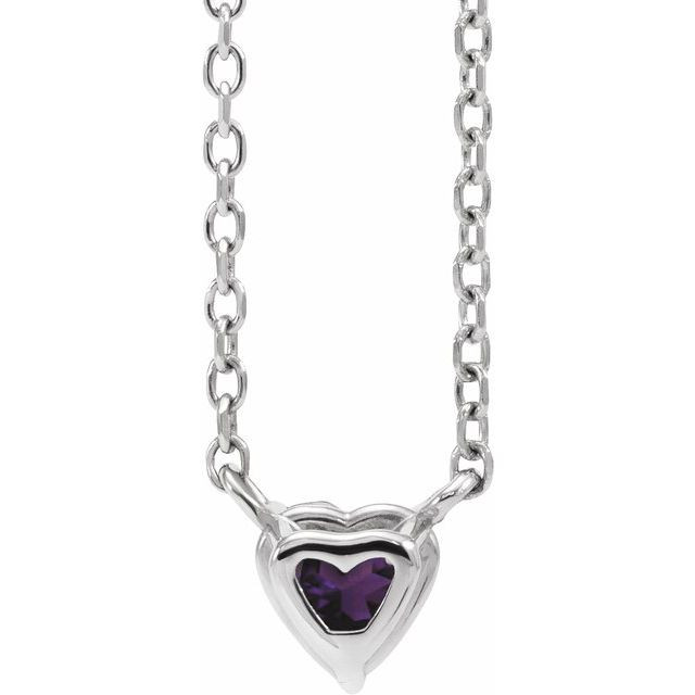 14 Karat White Gold Natural Amethyst Heart 16 inch Necklace