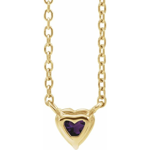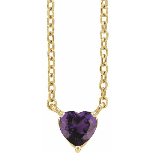 14 Karat Yellow Gold Amethyst Heart 16 inch Necklace