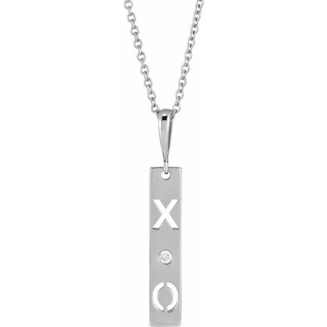 Platinum .0075 Carat Natural Diamond XO Bar 16 inch Necklace