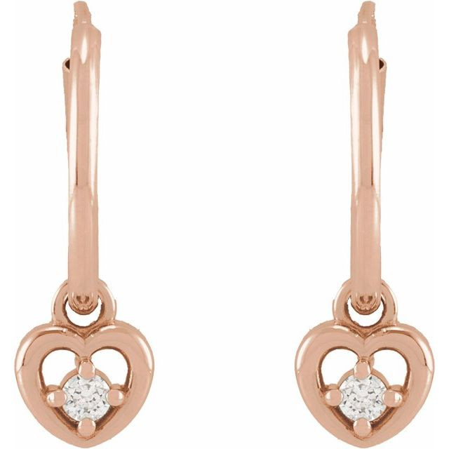 14 Karat Rose Gold .06 Carat Natural Diamond Heart Hoop Earrings