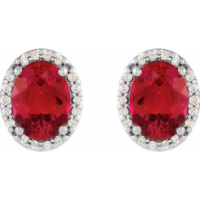 Platinum Lab-Grown Ruby & .04 Carat Natural Diamond Halo-Style Earrings Comes Set With