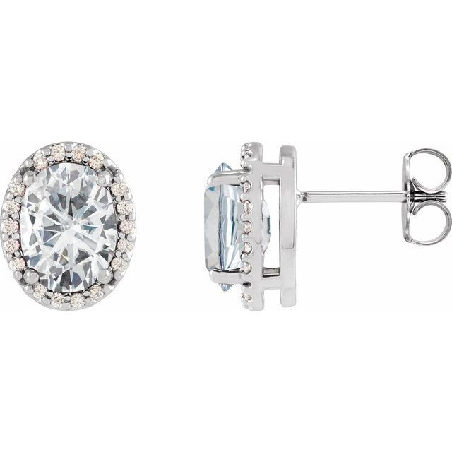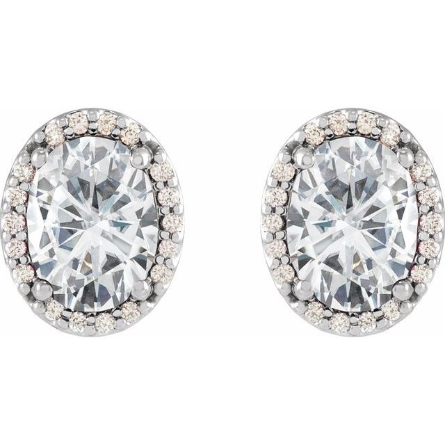 Platinum Stuller Lab-Grown Moissanite & .04 Carat Natural Diamond Halo-Style Earrings Comes Set With