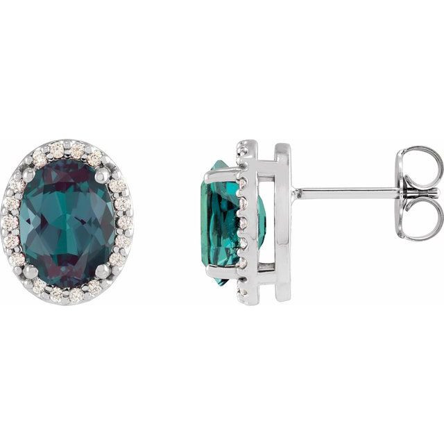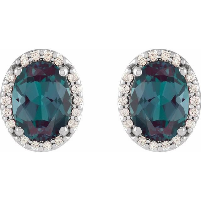 Sterling Silver 5x3 mm Lab-Grown Alexandrite & .04 Carat Natural Diamond Halo-Style Earring Comes Set With