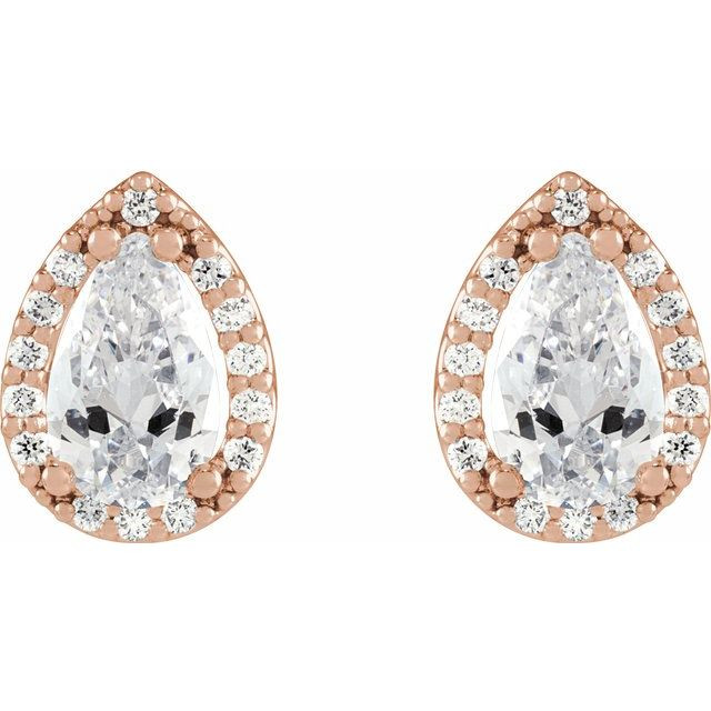 14 Karat Rose Gold 4x2.5 mm Pear 0.25 Carat Natural Diamond Halo-Style Earrings Comes Set With
