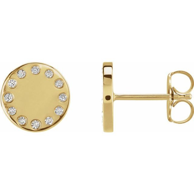 14 Karat Yellow Gold .05 Carat Natural Diamond Full Moon Phase Earring Comes Set With