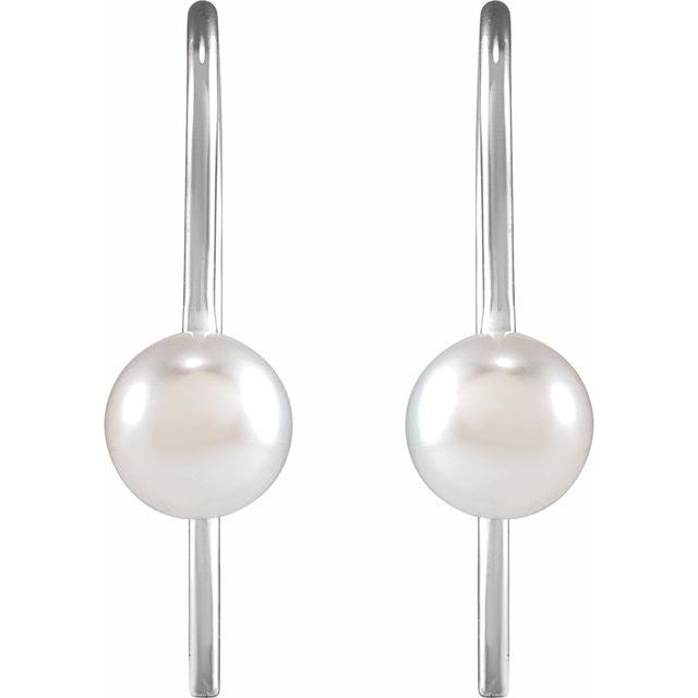 14 Karat White Gold Cultured White Akoya Pearl Wire Earrings Comes Set With