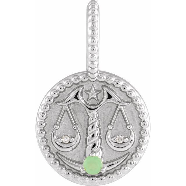 14 Karat White Gold Chrysoprase and .005 carat Diamond Libra Charm