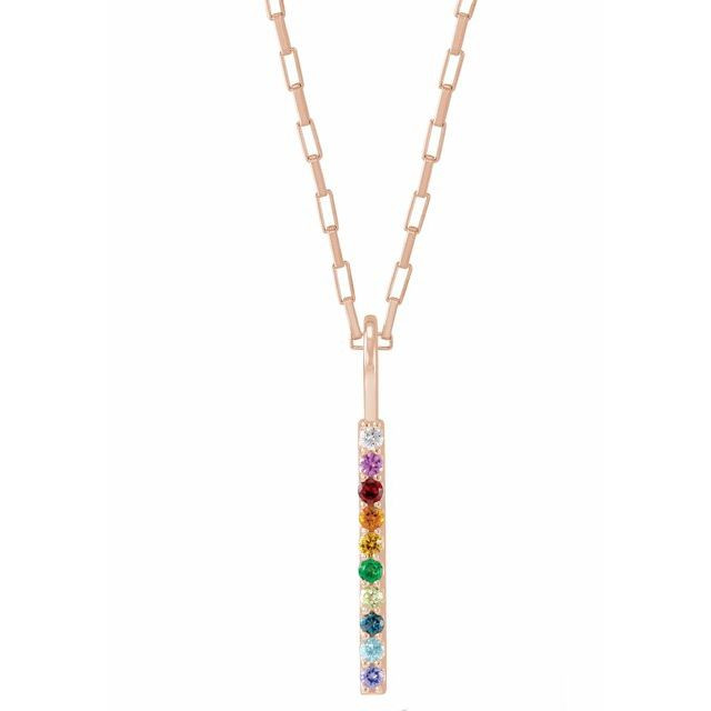 14K Rose Natural Multi-Gemstone Rainbow Bar 18 inch Necklace