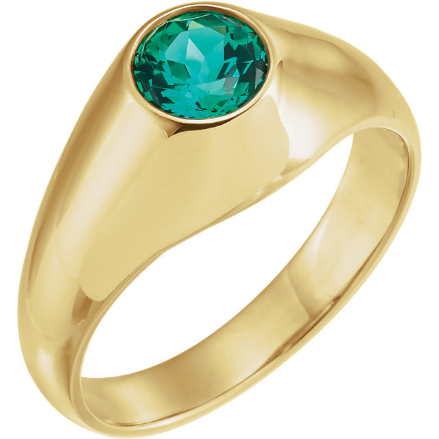 14 Karat Yellow Gold 6.5mm Round  Created Emerald Gemstone Ring