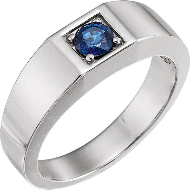 14 Karat White Gold Sapphire Men's Ring is set with selected fine genuine blue sapphire and set with the highest craftsmanship standards in 14kt White gold