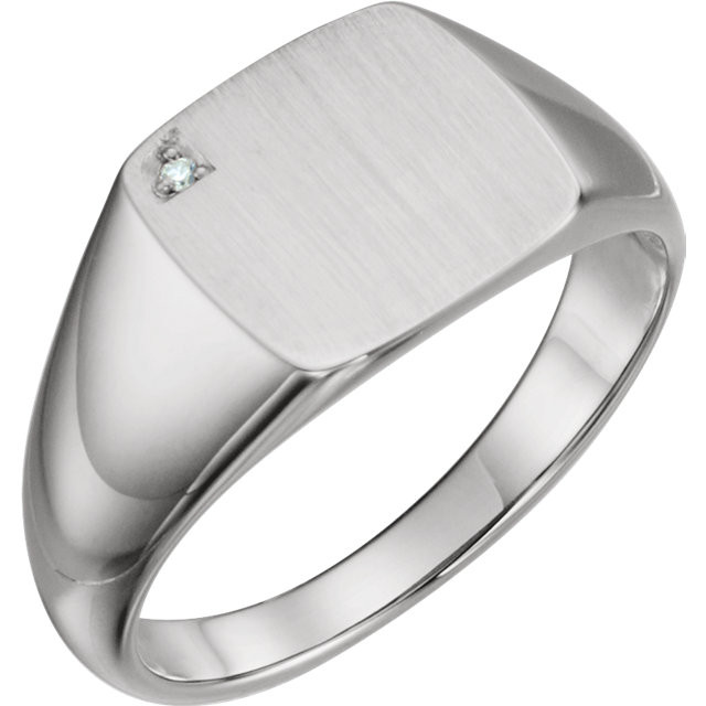 14 Karat White Gold .0075 Carat Total Weight Diamond Men's Signet Ring is set with selected fine genuine diamond and set with the highest craftsmanship standards in 14kt White gold