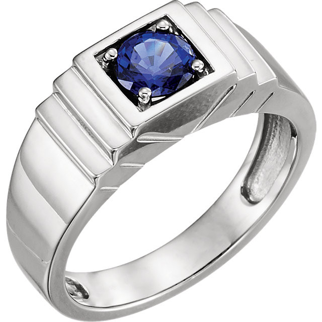 Sterling Silver Men's Genuine Lab Grown Created Created Blue Sapphire Ring is set with selected fine Lab Grown blue sapphire and set with the highest craftsmanship standards in sterling silver