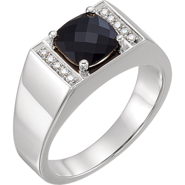 Sterling Silver Men's Onyx & 0.10 Carat Total Weight Diamond Ring is set with selected fine genuine onyx and set with the highest craftsmanship standards in sterling silver