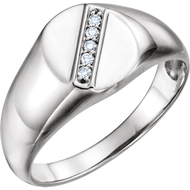 Platinum .08 Carat Total Weight Diamond Men's Oval Signet Ring is set with selected fine genuine diamond and set with the highest craftsmanship standards in platinum