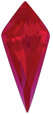 This Created Ruby in a traditional Shield cut gemstone in Grade GEM displays a vibrant medium Red. This lab-created gemstone is identical to their mined gemstone counterparts in all respects, chemical make up, crystal structure, appearance, refractive index, optical characteristics, hardness and all other physical properties. It has been faceted to a very high professional lapidary standard and has a very good make, polish and symmetry. It has a clarity rating of Eye Clean Plus.