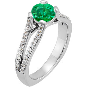 Unique Split Shank 4-Prong set with 1.00 Carat 6mm Emerald Gemstone Engagement Ring