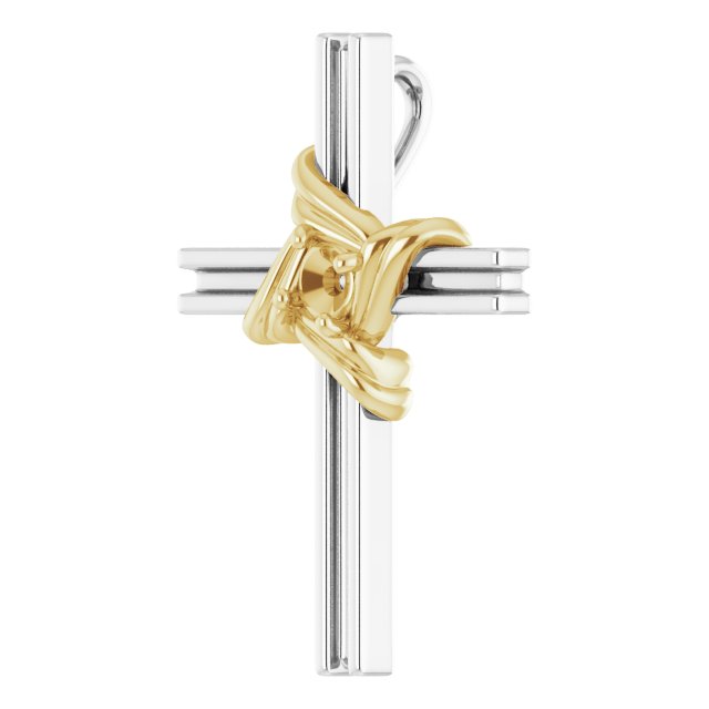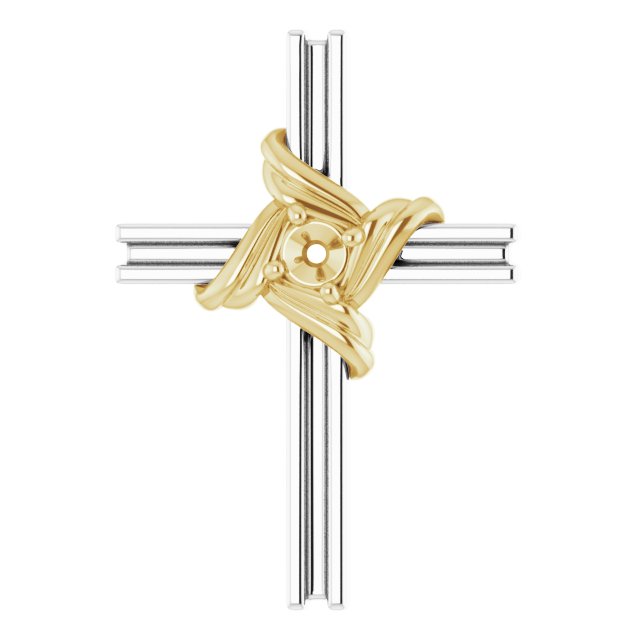 Accented Cross Pendant Mounting in 14 Karat White/Yellow Gold for Round Stone, 1.28 grams