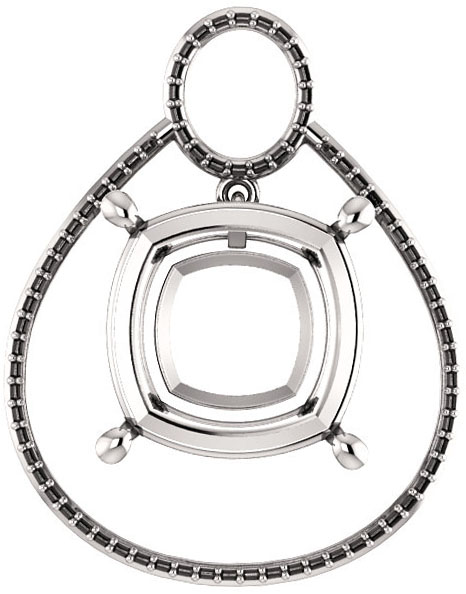 Articulated Dangle Accented Soiltaire Pendant Mounting for Cushion Gemstone Size 5mm to 15mm