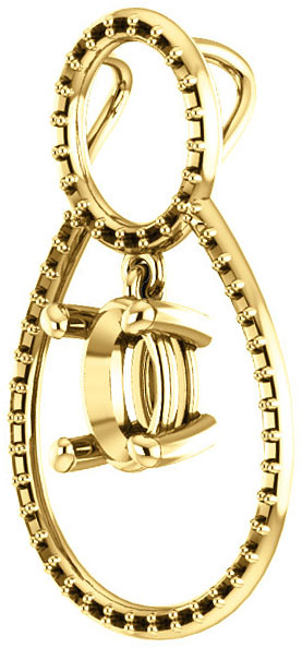 With a Dangling Gemstone in the Middle, This Eye Catching Pendant Mounting Features an Open Accented Frame Made Up of An Upper Circle and a Lower Rounded Shape.