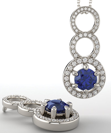 Triple Open Framed Accented Pendant Mounting for Round Gemstone Size 4.10mm to 15mm