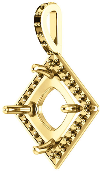 This Eye Catching Pendant Mounting Features a Halo From in a Diamond-Oriented Square Shape Which Creats a Contemporary Take on the Classic Halo Style.