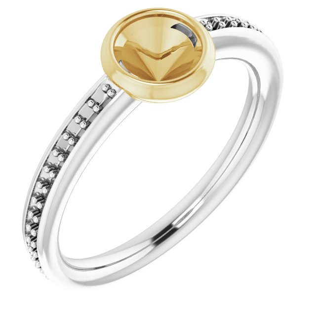 Bezel Set Accented Ring Mounting in 10 Karat White/Yellow Gold for Round Stone