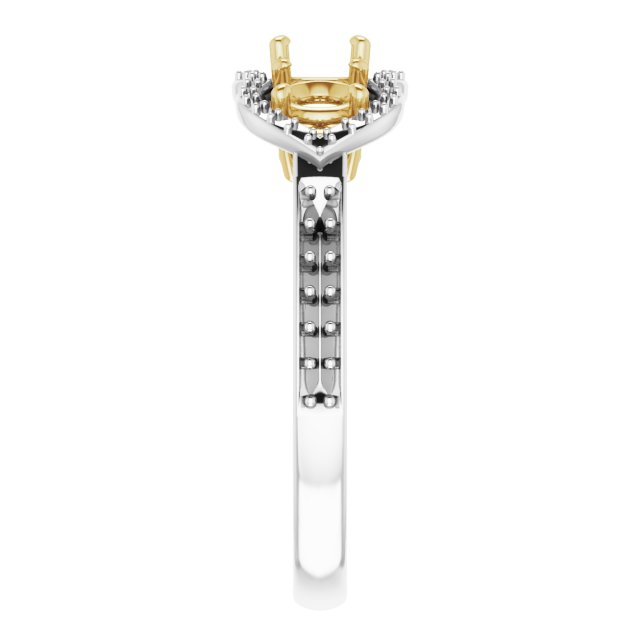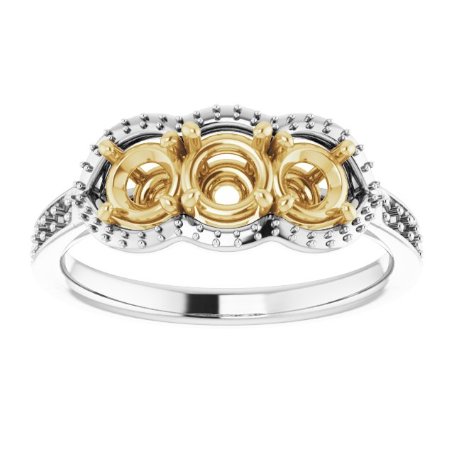 Three Stone Halo Style Ring Mounting in 14 Karat White/Yellow Gold for Round Stone