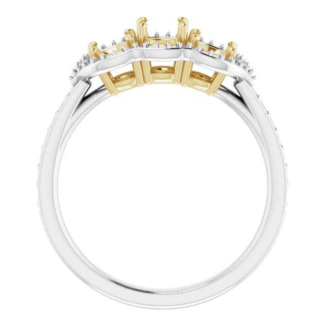 Three Stone Halo Style Ring Mounting in 18 Karat White/Yellow Gold for Round Stone