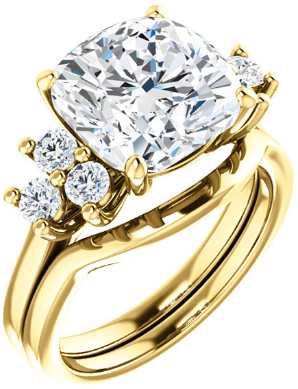 Ring Mounting for Cushion Gemstone Size 5mm to 10mm Triple Side Accents