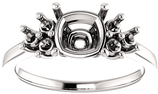 Ring Mounting for Cushion Gemstone Size 5mm to 10mm  Triple Side Accents