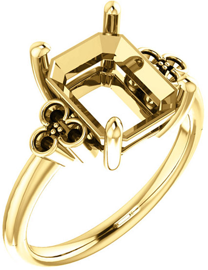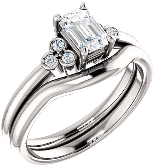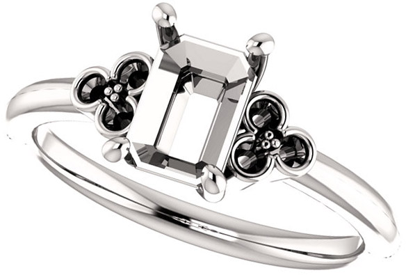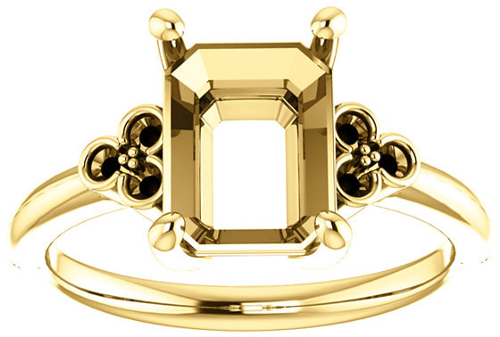Triple Side Accent Ring Mounting For Emerald Gemstone Size 6 x 4mm to 11 x 9mm