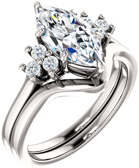 Ring Mounting for Marquise Gemstone Size 8 x 4mm to 12 x 6mm Triple Side Accents