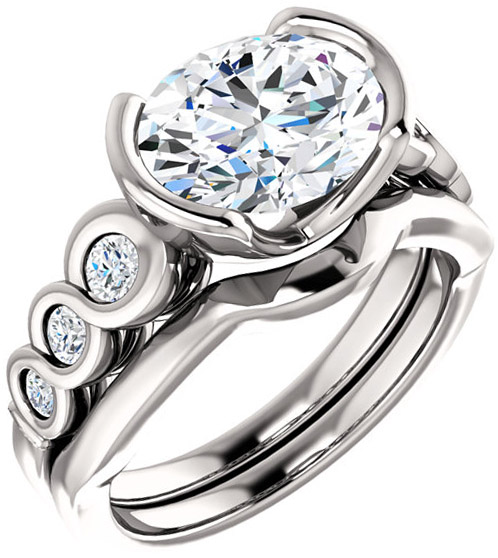 Chic Accented Engagement Ring Mounting For Oval Gemstone Size 6 x 4mm to 10 x 8mm