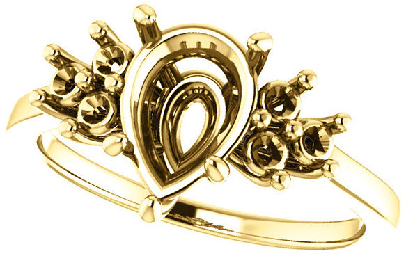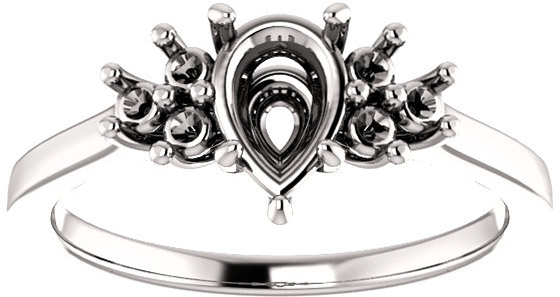 Ring Mounting for Pear Gemstone Size 6 x 4mm to 12 x 8mm Triple Side Accents