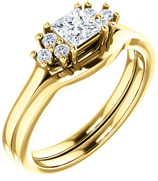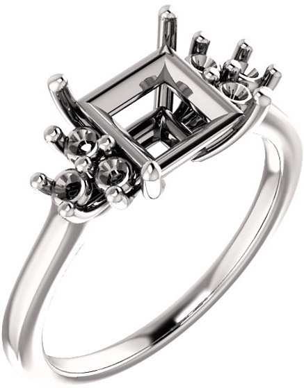 Ring Mounting for Square Gemstone Size 4mm to 10mm Triple Side Accents