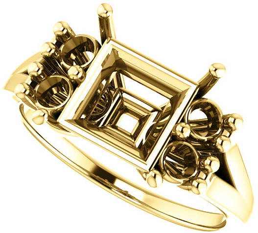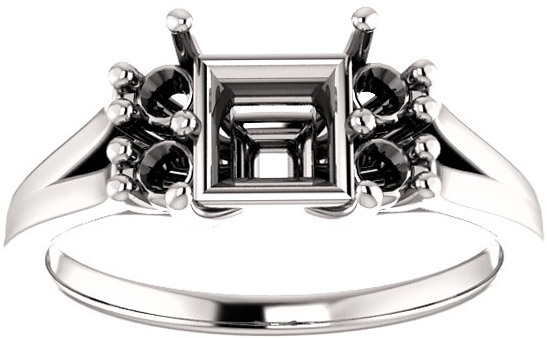 Square Ring Mounting With 4 Side Accents Gemstone Size 4mm to 10mm