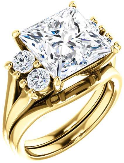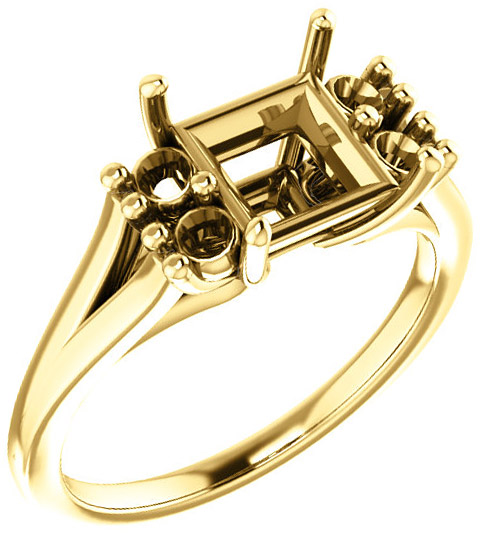 Two Round Side Accents Flank the Centergem on Each Side in This Classy Ring Mounting. The Split Shank Detailing Adds Drama And Serves to Highlight the Four Round Side Accents.