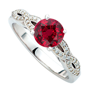 Just Quality! Fiery RED Ruby is breathtaking in this twisted shank diamond ring custom made 14 karat white gold genuine Ruby gemstone ring is graced by one of our top grade Vivid Red GEM grade natural Rubies. This top quality Ruby displays all the attributes you will expect in a ruby of this quality. The vivid red color combined with exceptional brilliance, excellent clarity(eye clean) and very good cut, polish and proportions make this a very special occasion ruby jewelry gift. The cut, polish and proportions are excellent. This is a very unique, quality piece of Ruby jewelry could be the perfect engagement ring for anyone who wants a genuine GEM grade Ruby mounted in jewelry. Sizing is no charge. This is a custom made Ruby ring and it is made to order. Please allow 10-14 days for delivery. beauty and life in a gemstone or gemstone jewelry. This Genuine Ruby Gemstone Ring must be seen in person to be appreciated. is set with selected fine genuine ruby and set with the highest craftsmanship standards in 14kt white gold