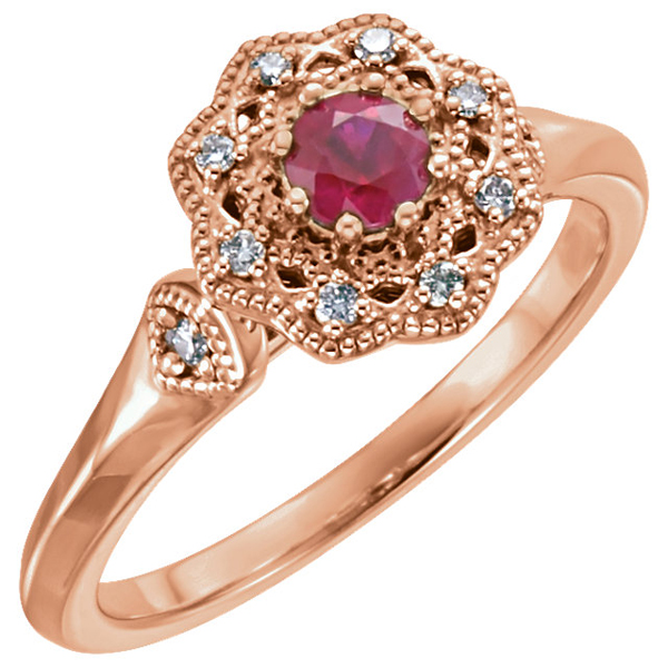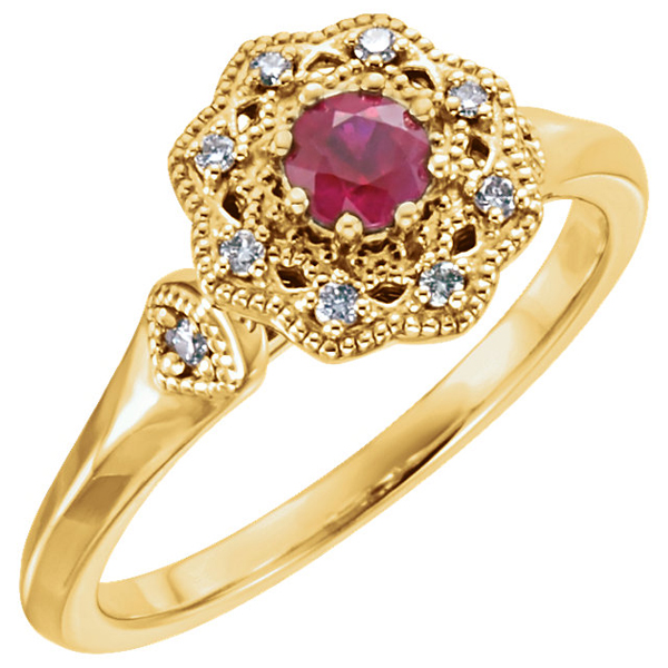 Classy Milgrain 0.35Carat Ruby 14 KT Gold With Diamond Accents - Metal Type Options