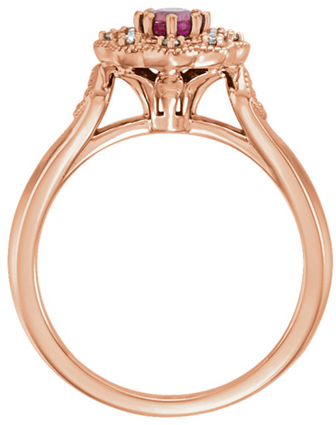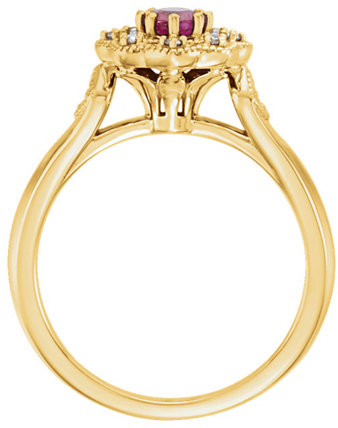 Classy Milgrain 0.35Carat  Ruby 14 KT Gold With Diamond Accents - Metal Type Options