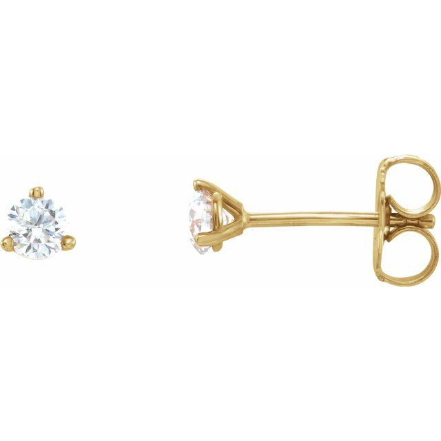 14 Karat Yellow Gold 0.13 Carat Diamond 3 Prong Earrings   VS F